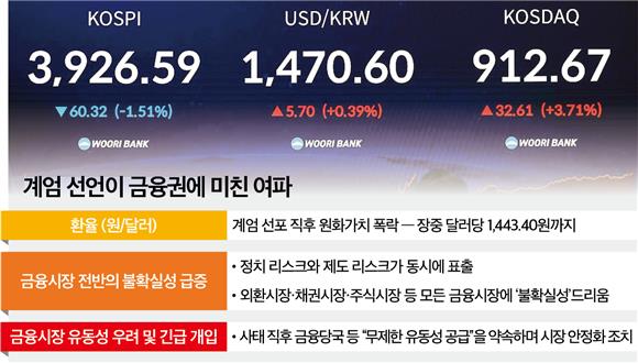 메뉴설정 홈 > 금융 > 전체 금융시장 안정됐지만…진정되지 않는 '환율' 1년 전 12·3 비상계엄 당시 원·달러 환율은 한때 1443원까지 치솟으며 한국의 금융시장에 충격파를 던졌습니다. 계엄이 철회되면서 환율은 일시 안정되는 듯 보였으나 최근 원·달러 환율은 다시 급등세로 돌아섰습니다. 금융권에선 이를 두고 전 세계적인 달러 기조 강화 등 여러 구조적 요인이 겹친 결과라고 보고 있습니다. 2일 금융권에 따르면 계엄 당시 금융시장 참여자들은 비상 대응 체계... (친위 쿠데타 1년)환율 고공행진에…2금융권 유동성 부담 표준수가제 논의 장기화…펫보험 활성화 '제자리걸음' 연말 대출 한파 속 지방은행 틈새 공략 최신기사 지방은행·인뱅 행장 연임·교체 기로 2025.12.02 06:00 지방은행과 인터넷전문은행(인뱅) 수장들의 임기 만료가 다가오면서 교체 및 연임 여부에 관심이 모아지고 있습니다. 지방은행장들은 대부분 이번 인사에서 3연임에 도전하는 구... (토마토칼럼)'론스타 악연'이 남긴 교훈 2025.12.01 06:00 국제투자분쟁(ISDS) 소송 완승으로 마무리된 한국과 외국계 사모펀드 론스타와의 질긴 악연은 '먹튀'와 '매국'이라는 단어로 점철된다. 론스타가 2003년 외환은행을 편법으로 사들... 기준금리 동결에 주담대 금리 상단 6%대 '꽁꽁' 2025.11.27 15:18 한국은행이 기준금리를 네 번 연속 동결하며 사실상 금리 인하 종료 가능성을 시사한 가운데 향후 은행 대출금리가 올라갈 가능성이 더욱 커지고 있습니다. 이미 주요 시중은행들... '삼성생명 일탈회계' 논란 핵심은? 2025.12.01 13:27 삼성생명(032830) 일탈회계 논란의 핵심은 삼성전자의 지분을 부채로 볼지, 자본으로 볼지 여부입니다. 금감원과 한국회계기준원은 1일 질의회신 연석회의를 열고, 삼성생명 등... 실적에 눈먼 새도약기금…대부업 특혜주다 '삐걱' 2025.11.28 14:03 새도약기금이 참여 저조를 이유로 대부업권에까지 '저금리 자금'이라는 파격적 혜택을 열어주자 금융권 전반의 불만이 커지고 있습니다. 정책 실적을 끌어올리려는 조급함이 업권 ... 새마을금고 회장 선거 20일 앞으로…2파전 속 키워드는 '개혁' 2025.11.27 06:00 새마을금고중앙회장 선거가 20일 앞으로 다가온 가운데 핵심 키워드로 '개혁'이 부상하고 있습니다. 전국 새마을금고가 역대급 경영난을 겪고 있는 만큼 변화가 필요하다는 요구... 더보기