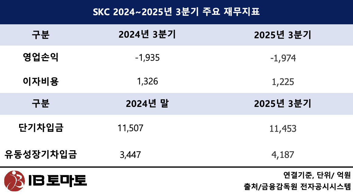 나머지 4100억원은 재무건전성 강화를 위한 차입금 상환에 쓰인다. SKC는 그간 신사업 투자를 위한 외부 차입이 늘어나면서 막대한 이자비용을 지출해왔다. 지난해 3분기 누적 기준으로 SKC가 지불한 이자비용만 약 1225억원에 달한다. 이는 영업손실(3분기 누적 기준 1974억원)과 맞물려 당기순이익을 악화시키는 주요 원인으로 꼽혔다.