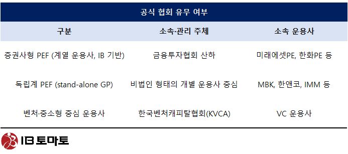 관련 업계에선 ESG에 대한 기준이 천차만별이라 구체적인 가이드라인이 필요하다는 목소리가 있었지만, 그동안 구심점인 공식 단체는 없었다. IB 기반의 증권사 계열 운용사들은 금융투자협회 산하에, 벤처·중소형 중심 운용사들은 한국벤처캐피탈협회(KVCA)가 구심점 역할을 해왔지만, PEF 업계 대표 기구는 공백 상태다.