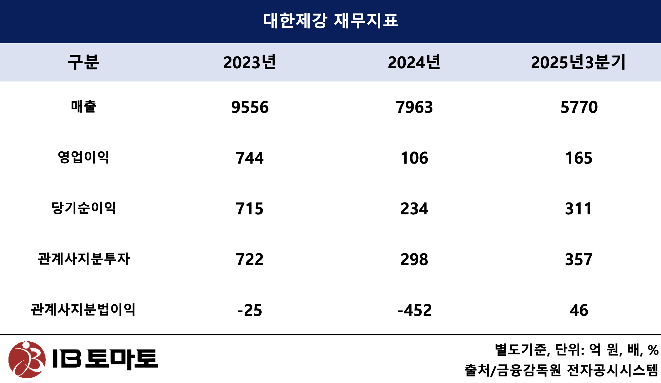 대한제강은 스크랩(고철) 사업과 부동산 신탁펀드 투자로 이익을 봤다. 이지스엑스블라인드일반사모부동산투자신탁제1호 펀드는 대한제강에 올해 3분기까지 지분법 이익 24억원을 안겨줬으며, 스크랩 업체 효진알이씨로부터 발생한 지분법 이익은 30억원이다. 이에 인공지능 스크랩 선별 시스템사 아이모스, 지역 기업 투자 펀드(BNK-경남 스마트이노베이션 투자조합) 등에서 일부 지분법 손실이 발생했음에도 전체 관계사 지분법 이익이 증가한 것이다.