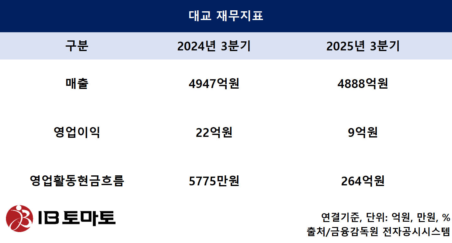 대교 관계자는 <IB토마토>와의 통화에서 “당사는 현금흐름 중심의 경영 기조를 유지하면서 비용 효율화와 자산운용 안정성을 강화해 재무 건전성을 지속 확보할 계획이다”고 말했다.