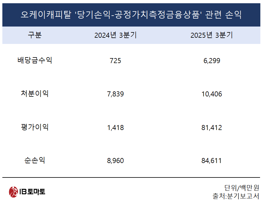 앞서 KB금융 주식 일부를 매도한 만큼 처분이익도 더 크게 반영될 것으로 보인다. 이 경우 오케이캐피탈은 세 가지 효과를 다 누리게 된다.